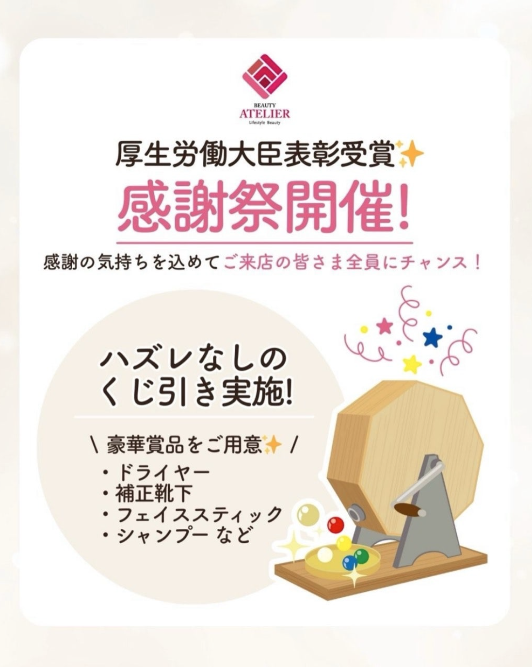 引き続き、ビューティアトリエをどうぞよろしくお願いいたします💐
